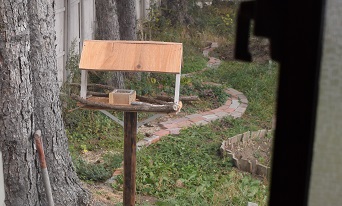 表の餌台は、リビングや仕事部屋から見え、ひらけて見通しの良い場所に設置してあります。