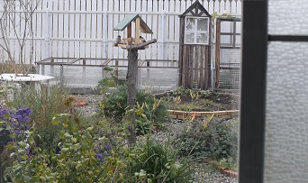 野鳥の餌台は、夏は庭のフォーカルポイントに。冬は主役になります。